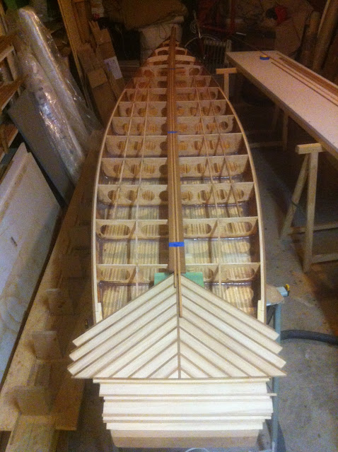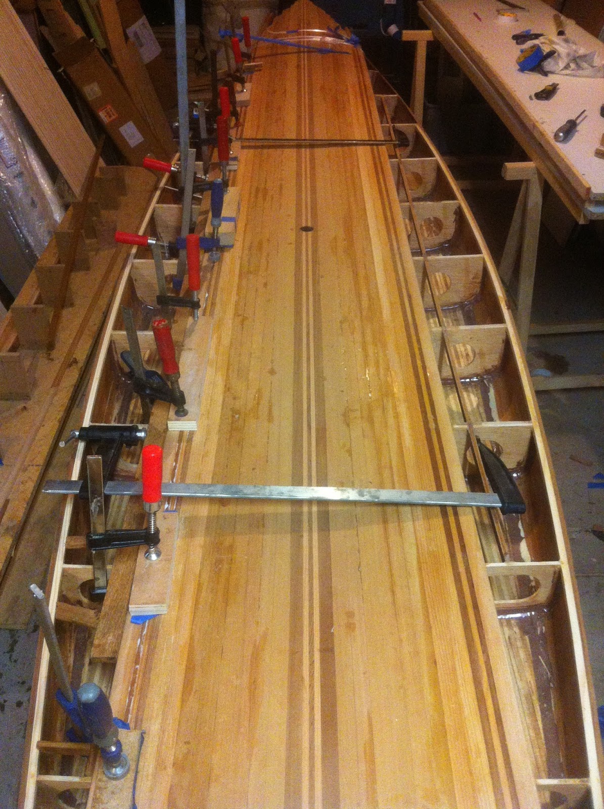 "This is the board I am building at the moment.Paulownia in the bow, bamboo veneered balsa, carbon tape and western red cedar on the sides. I have started the deck now."
