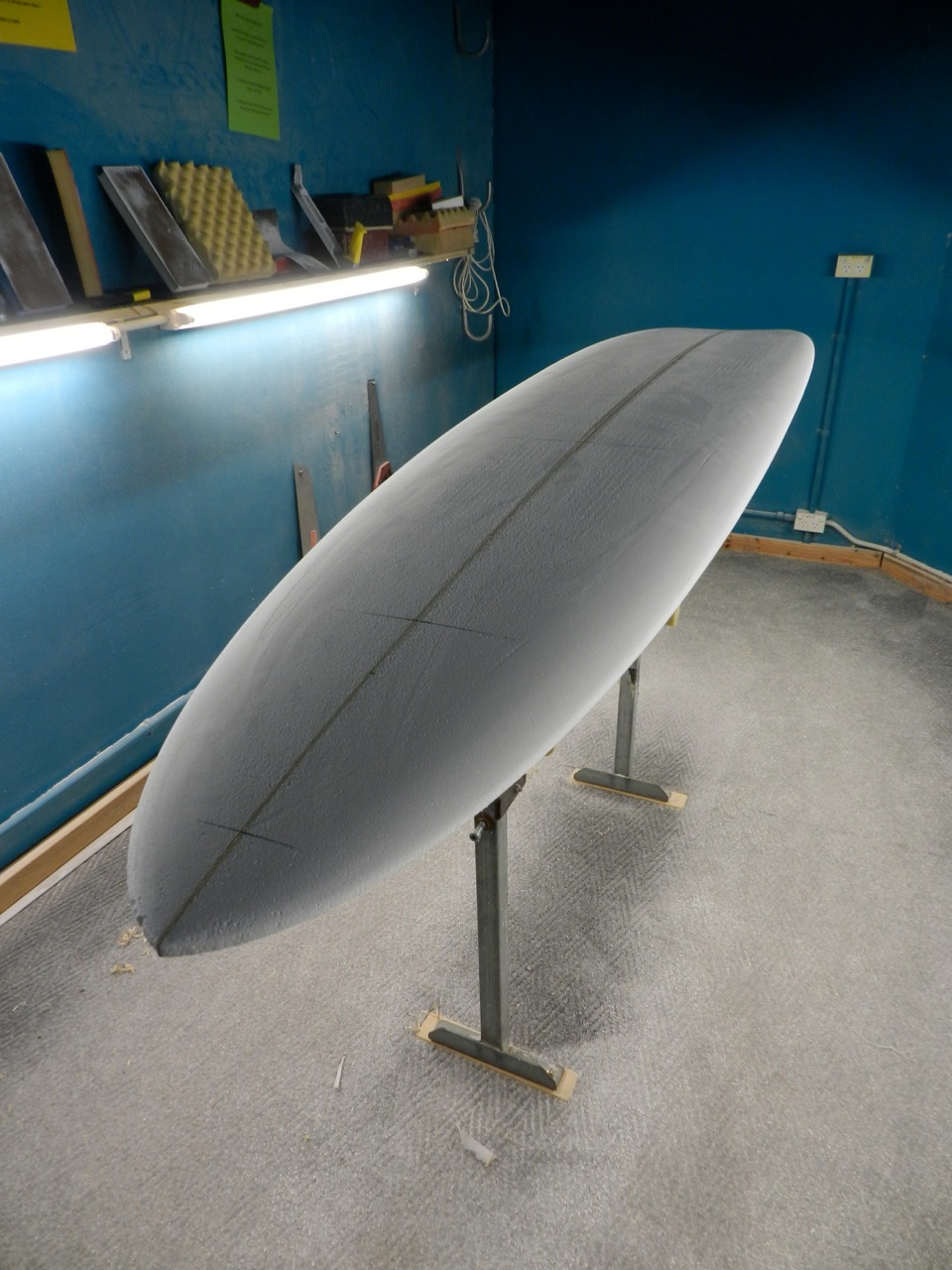 All cleaned up with the rail bands foiled to the deck and bottom. Bag it up and off to the shaping bay.