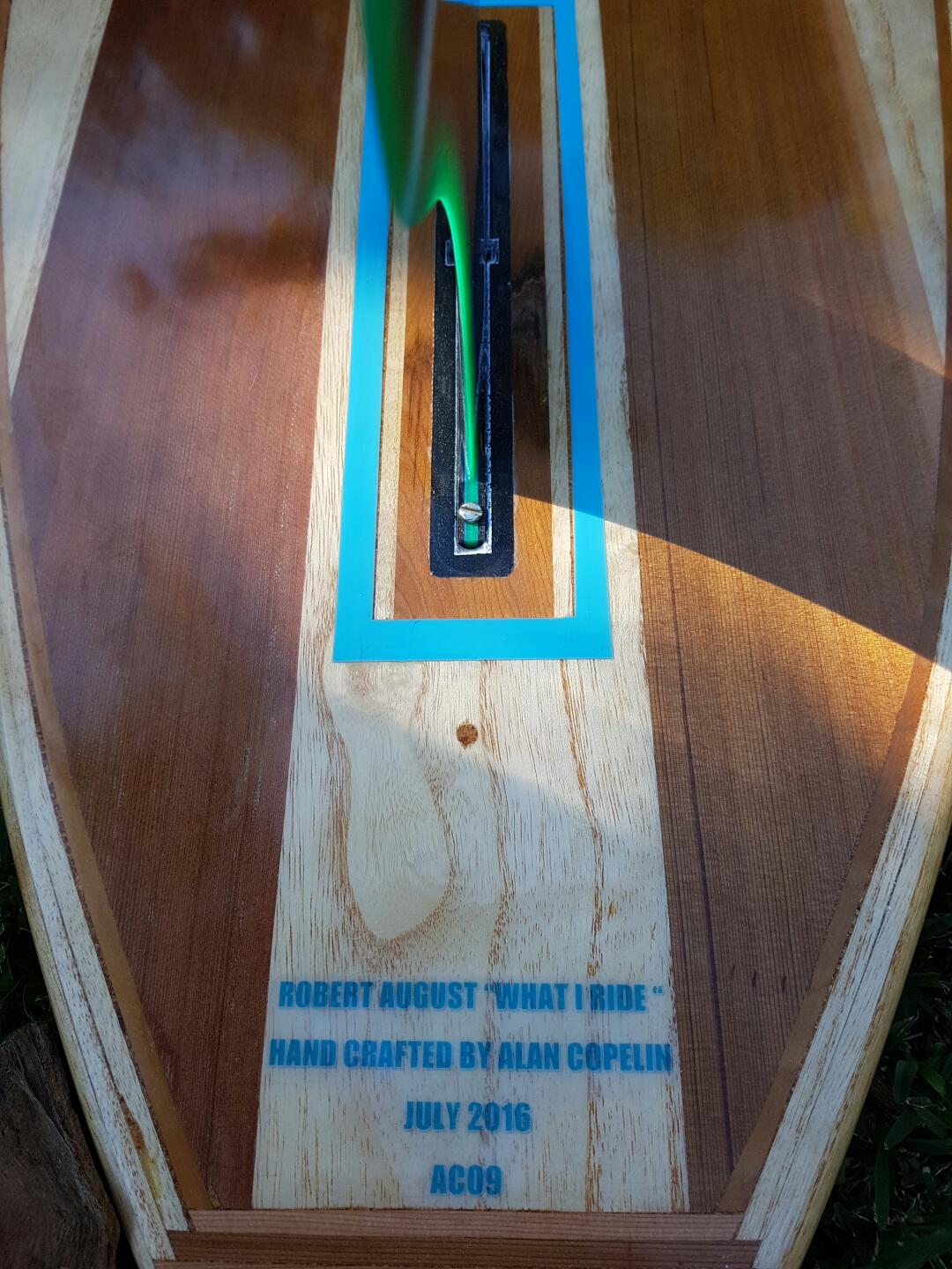 Alan Copelin loved his Robert August "What I Ride " model so much he decided to build one in wood. And then while on a surf trip to Costa Rica he met up with Robert who gave him a logo to use on his wooden board.