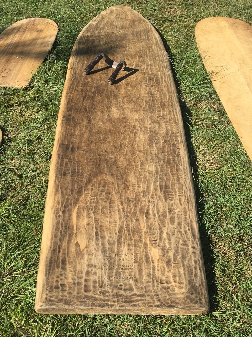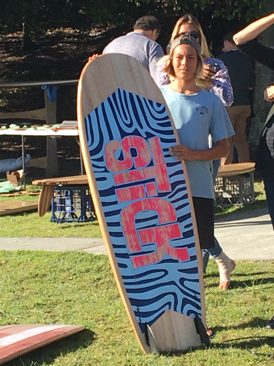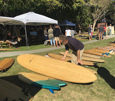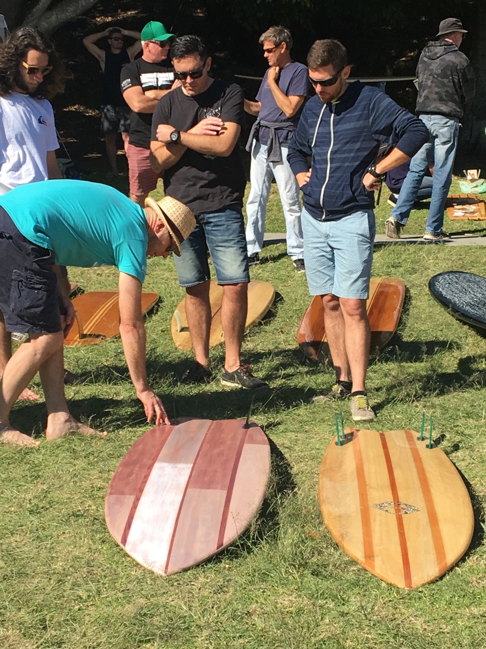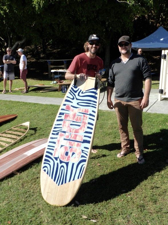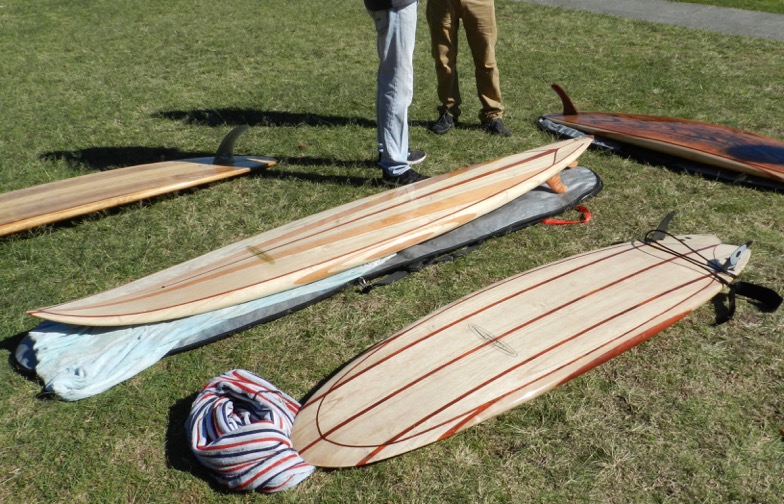 Stuart Bywater a fine furniture maker from Brisbane also conducts wooden board building classes a number of time a year. He had a large collection of boards built by students who were there on the day as well. Great to have their support.