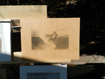 At 11 o'clock we had Tom Wegener talk about what he has been up to and he gave a pretty good run down of the history of wooden boards under the Trees of knowledge.This was followed by Stuart Bywater explaining how he got into board building and the method he has developed for his board building classes.