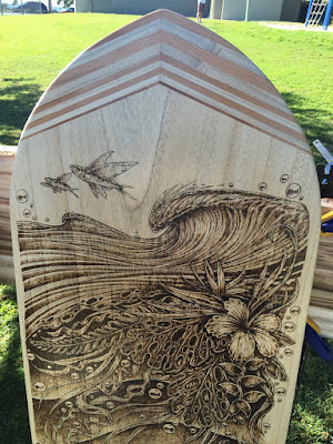 Sydney based James Robertson of Bound By Sea with his beautiful Pyrography / Wood burning / hot poker art on hand made alaia's.