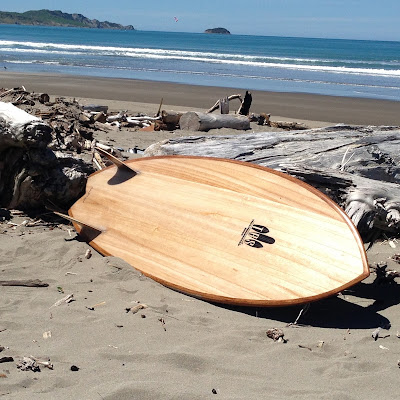 It has been a little shaky in New Zealand lately but that hasn't stopped Adam Lloyd from building his wooden boards. I helped him get started with the vacuum bagging and now he has done a couple of simmons style boards and this retro twin fin which is 5'7'' x 20 1/4 and 2 1/2 thick . He has another one on the go at the moment which is a 5ft 11" performance shortboard. "Hopefully it turns out as well as this one. Got this one made just in time for the smaller summer months. "